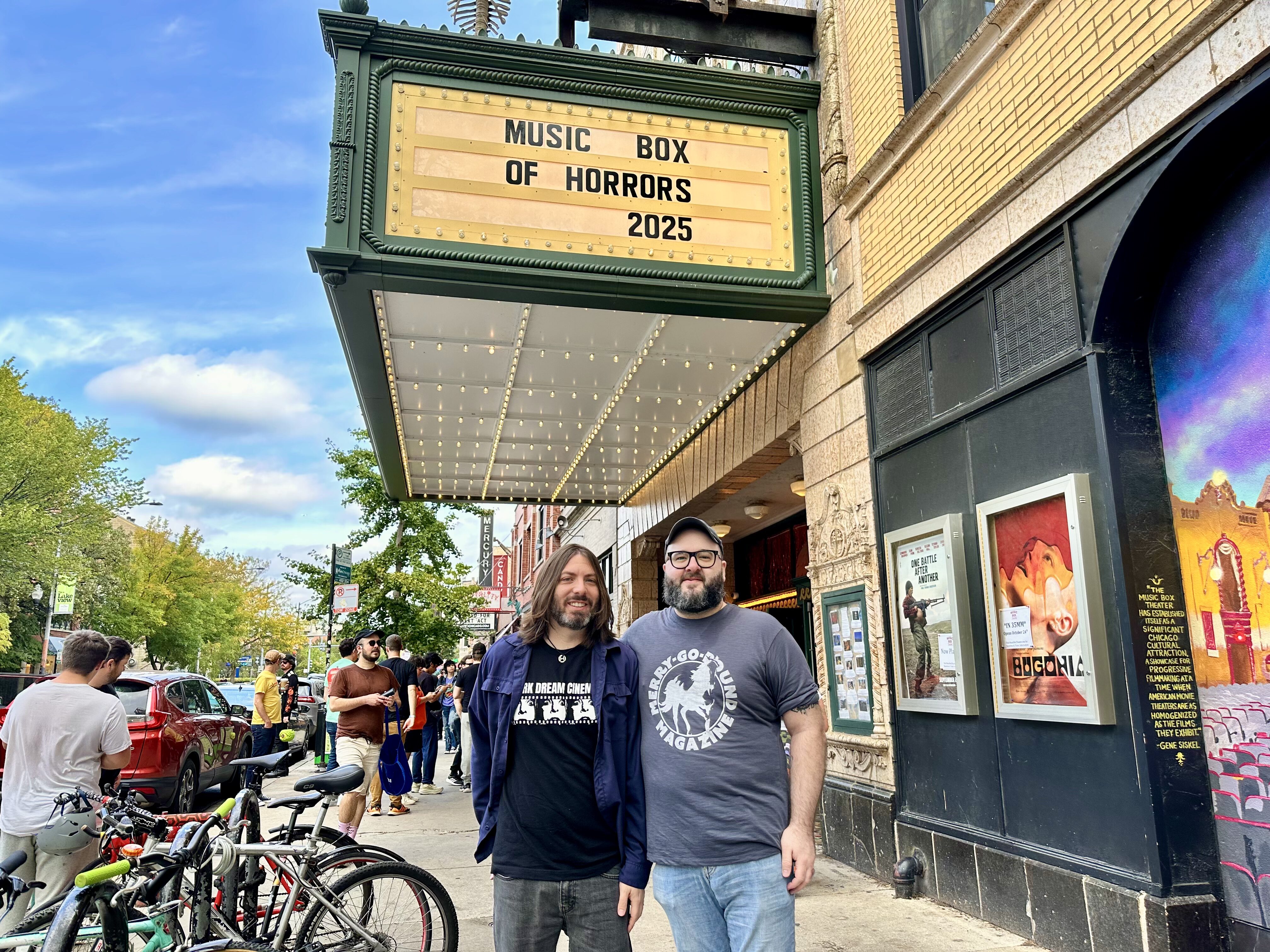We don’t get to hang out much since I moved to Chicago in 2024, but I’ve known Jon for around 20 years. We met while working at the record store where I spent my 20s; we were roommates for a bit, and later, he helped get me hired for a short stint at the comic shop he managed. He’s one of the kindest friends I have ever had the pleasure of knowing. A lifelong fan of grunge music, comic books, obscure video games, weird movies, and that lovable Mondays-hating orange cat Garfield, Jon is the kind of positive guy who always sees the best in people, even when they are the absolute worst. He’s also been the host of the long-running monthly cult classic movie night STRANGE BREW at the Arkadin Cinema in St. Louis. I sent him a half-joking text earlier this year suggesting that we grab tickets for Music Box of Horrors, a 24-hour horror movie festival that Music Box Theatre puts on every year in Chicago, and, of course, he was game. I bought us a pair the moment they went on sale in the spring.